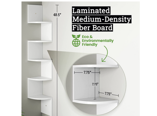 5 Tier Floating Corner Shelves For Wall Hanging Bookshelf Décor - 123cm Long