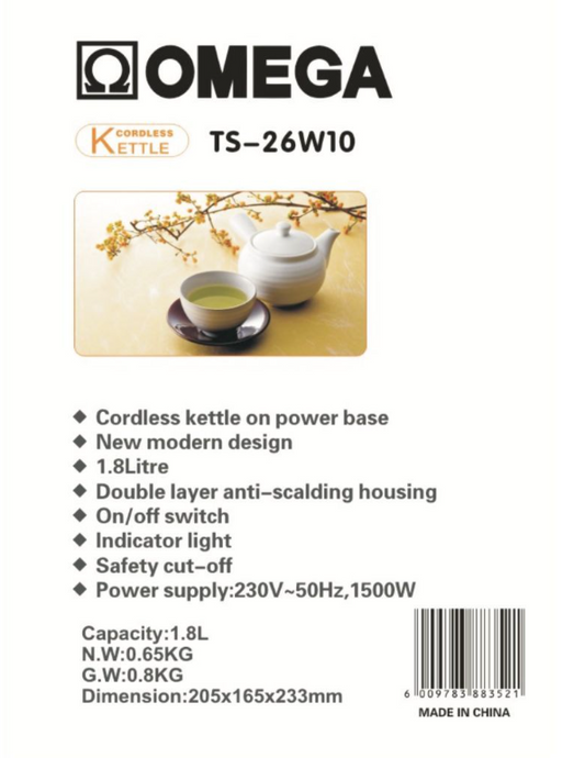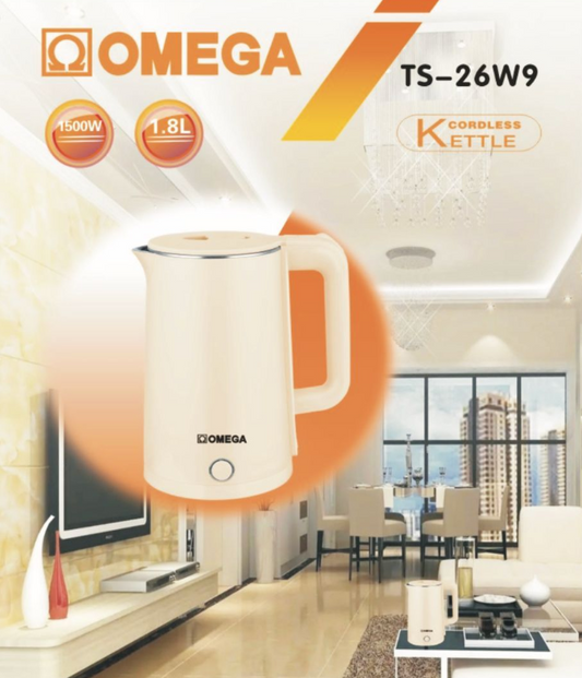 Omega Cordless Stainless Steel White Kettle TS-26W10