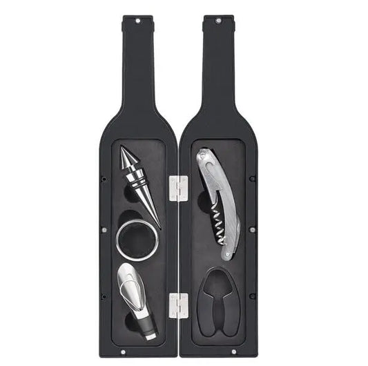 Wine Bottle Shaped Corkscrew and Accessory Gift Set – 5 Piece