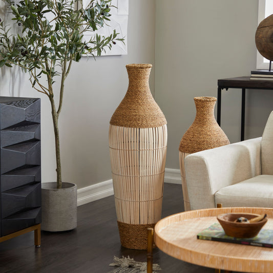 Brown Seagrass Handmade Tall Woven Floor Vase 11"W X 11"L X 32"H - Brown - Line